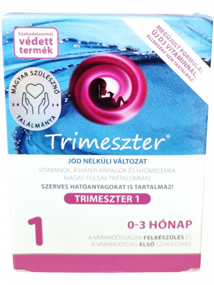 A Trimeszter 1 kifejezetten a fogantatás előtti felkészülés és a várandósság első három hónapjának időszakára fejlesztett formula. Magas folsavtartalmával segíthet a velőcső-záródási rendellenességek kockázatának csökkentésében. A készítmény jód nélküli változatban készült, így azok számára is biztonságos, akiknél jódbevitel nem ajánlott. Szerves kötésű ásványi anyagokat tartalmaz, valamint vasat, kalciumot, magnéziumot és cinket, amelyek támogathatják a magzat fejlődését és az anya szervezetének megfelelő működését. A szabadalommal védett formula allergénmentes és színezékmentes. A csomagolás 60 db tablettát tartalmaz, amely kényelmes és biztonságos adagolást tesz lehetővé a várandósság első trimeszterében.
