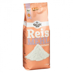 500 g-os teljes kiőrlésű rizsliszt; Bauckhof termék sütemények, pékáruk készítéséhez.