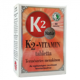 A K2-vitamint a vastagbélben lévő egyes baktériumok termelik. Pótolja a K-vitamint a szervezet számára kedvező természetes forrásból, támogassa az egészséges életmódot! Adagolás (felhasználás): naponta 1 tabletta bőséges folyadékkal lenyelve. Összetevők: dikalcium-foszfát, maltodextrin, kukoricakeményítő, nátrium-karboxymethyl keményítő, stabilizátor: HPMC, PEG, térfogatnövelő: magnézium-sztearát, K2-vitamin (menakinon). Hatóanyagok a napi adagolásra: napi 1 tablettára: K2-vitamin: 100µg (133 NRV%). NRV = felnőttek számára ajánlott napi bevitel.