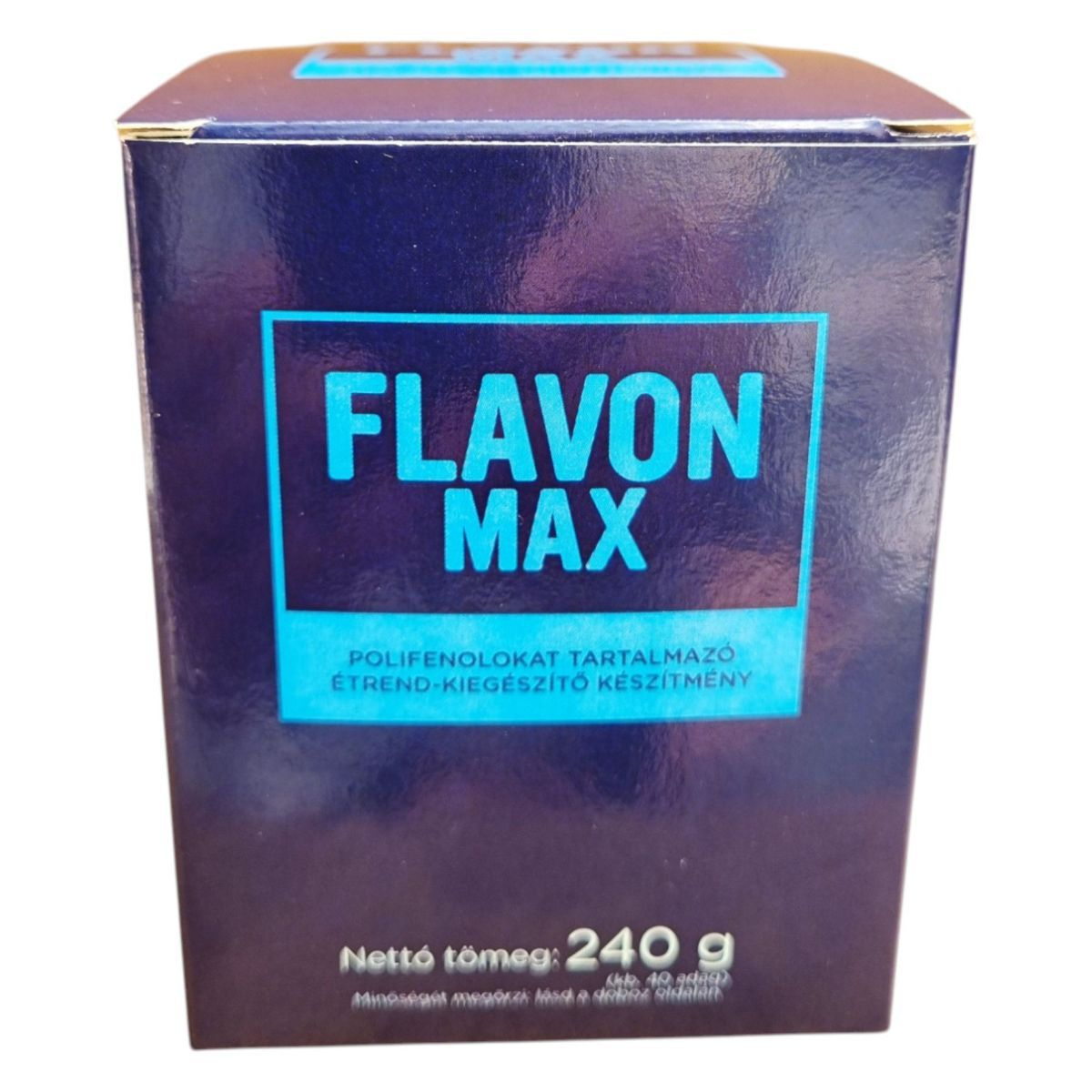 A Flavon Max egy polifenolokat tartalmazó étrend-kiegészítő, amely különféle gyümölcsök és növények koncentrátumait tartalmazza, mint például fekete ribizli, áfonya, bodzabogyó és homoktövis. A termék C- és E-vitamin tartalma hozzájárulhat a sejtek védelméhez az oxidatív stresszel szemben. A Panax ginseng adaptogén hatása miatt a termék fogyasztásában szünetet kell tartani, és bizonyos egészségügyi állapotok esetén nem javasolt a fogyasztása. A termék tartósítószert nem tartalmaz, és természetes összetevői miatt enyhe eltérések lehetnek az állagában, színében és ízében, amelyek a minőséget nem befolyásolják.