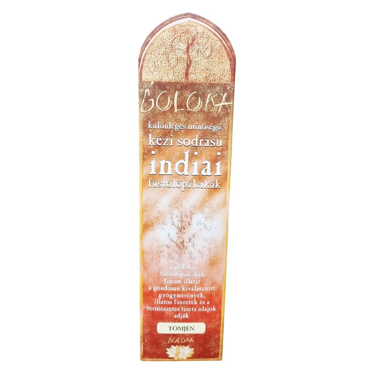 A Goloka különleges minőségű, kézi sodrású indiai füstölőpálcikák között megtalálható a tömjén illat, amely lazító és stresszoldó hatású. Más illatok aromaterápiás előnyei: a szantál nyugtató meditációhoz, nag-csampa feszültségoldó, az everest vidámító, a rózsa depresszió ellen hat, a fahéj gondolatébresztő és fertőtlenítő, a kókusz idegnyugtató, az Om Hari élénkítő, az opium pihentető. Egy szál égési ideje 50-60 perc. A csomag 10 darab füstölőpálcikát tartalmaz. A termék minőségét korlátlan ideig megőrzi.