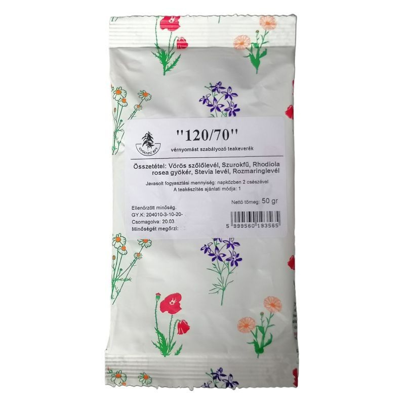 50 g-os szálas teakeverék; Gyógyfű termék a magas vérnyomás kiegészítő kezeléséhez.