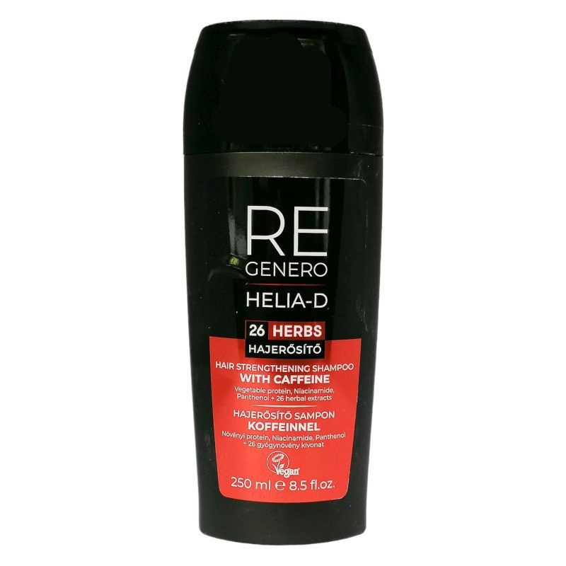 250 ml-es hajerősítő koffein sampon; Helia-D termék hajápoláshoz.