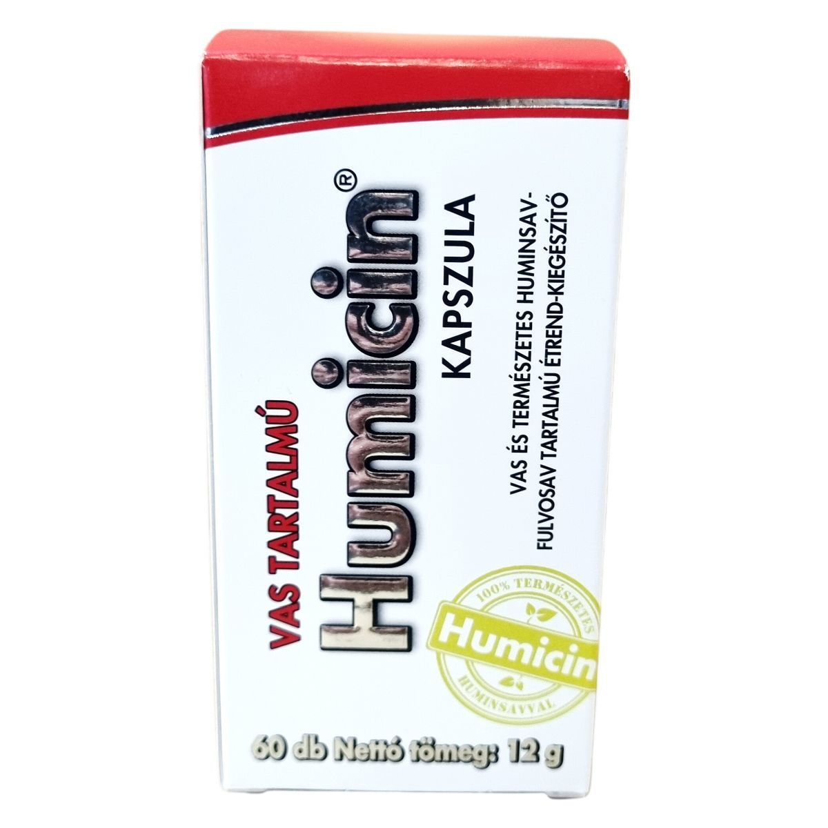 A Humicin® kapszula egy olyan étrend-kiegészítő, amely természetes huminsav-fulvosavat és vasat tartalmaz. A benne található vas a szervezet normál oxigénszállításában vesz részt, hozzájárulhat a normál vörösvérsejt- és hemoglobinképződéshez, valamint az immunrendszer megfelelő működéséhez. A termék fogyasztása elsősorban kiegyensúlyozatlan táplálkozás, szigorú diéta vagy vegetáriánus étrend esetén javasolt. A kapszula dózisa napi két alkalommal egy-egy kapszula, melyet étkezések előtt célszerű bőséges folyadékkal bevenni. A termék összetételében megtalálhatók a természetes huminsav-fulvosav keverék, vas-szulfát, mikrokristályos cellulóz, hidroxi-propil-cellulóz, valamint csomósodást gátló anyagok. A termék nem helyettesíti a kiegyensúlyozott étrendet és az egészséges életmódot.