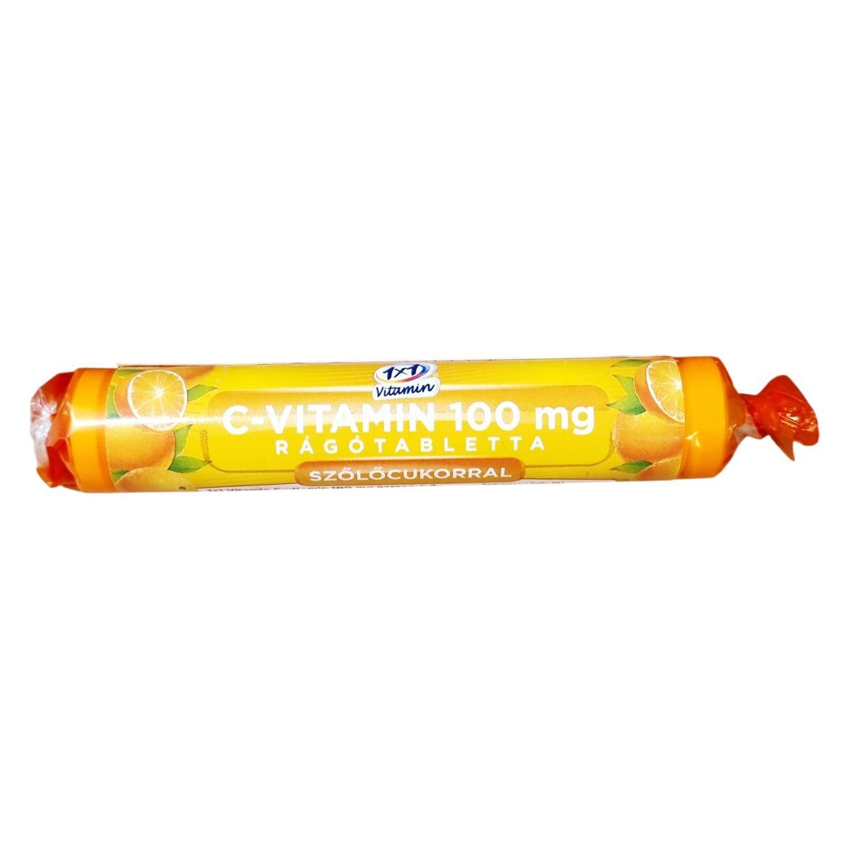 Az 1x1 Vitamin C-vitamin 100 mg narancsízű rágótabletta szőlőcukorral készül, és 17 darabot tartalmaz egy csomagban, amelynek nettó tömege 39,1 g. A termék származási helye az Európai Unió. Az egy tablettában lévő 100 mg C-vitamin a napi táplálkozási referenciaérték 125%-át biztosítja. A termék összetevői között dextróz, maltodextrin, csomósodást gátló anyagok és természetes aroma is található. A csomagoláson feltüntetett minőségmegőrzési időn túl a termék fogyasztása nem javasolt.