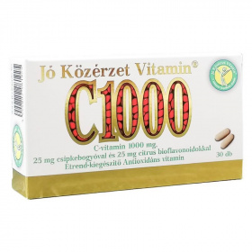 A C vitamin fontos szerepet játszik a vas felszívódásában. Szükséges az idegrendszer normál működéséhez. A Jó Közérzet VitaminŽ C Vitamin 1000 mg 25 mg csipkebogyóval és 25 mg citrus bioflavonoiddal, termékválasztékunk egyik legsikeresebb tagja. Ez a C vitamin készítmény nagyon jó felszívódású, filmtabletta kivitelben készül. A Jó Közérzet VitaminŽ C Vitamin 1000 mg jelenleg az egyik legolcsóbb C vitamin termék a magyar piacon. Ajánlott napi fogyasztási mennyiség: napi 1 db C vitamin tabletta.