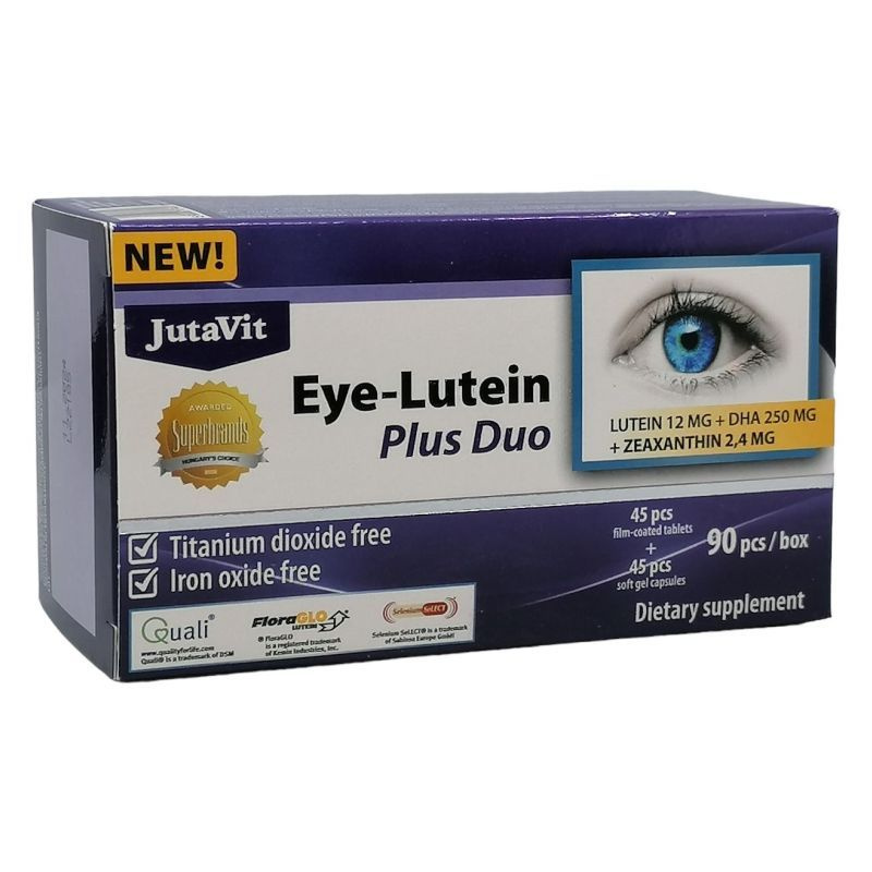 A JutaVit Szem-Lutein Plusz Duo javasolt időskori szembetegség (például: makuladegeneráció), illetve az erős fénysugárzás, oxidatív szemkárosító hatása esetén a különleges táplálkozási igény kielégítésére. A lutein a retina és a szemlencse egyik összetevő anyaga. A B2-vitamin, cink hozzájárul a normál látás fenntartásához. A C-vitamin, E-vitamin, B2-vitamin, cink valamint a szelén antioxidáns hatásuknak köszönhetően hozzájárulnak a sejtek oxidatív stressz elleni védelméhez.