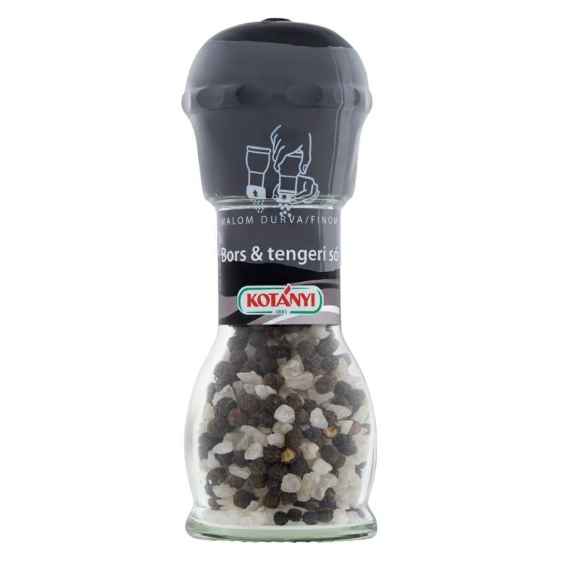 65 g-os bors & tengeri só; Kotányi termék fűszerezéshez.