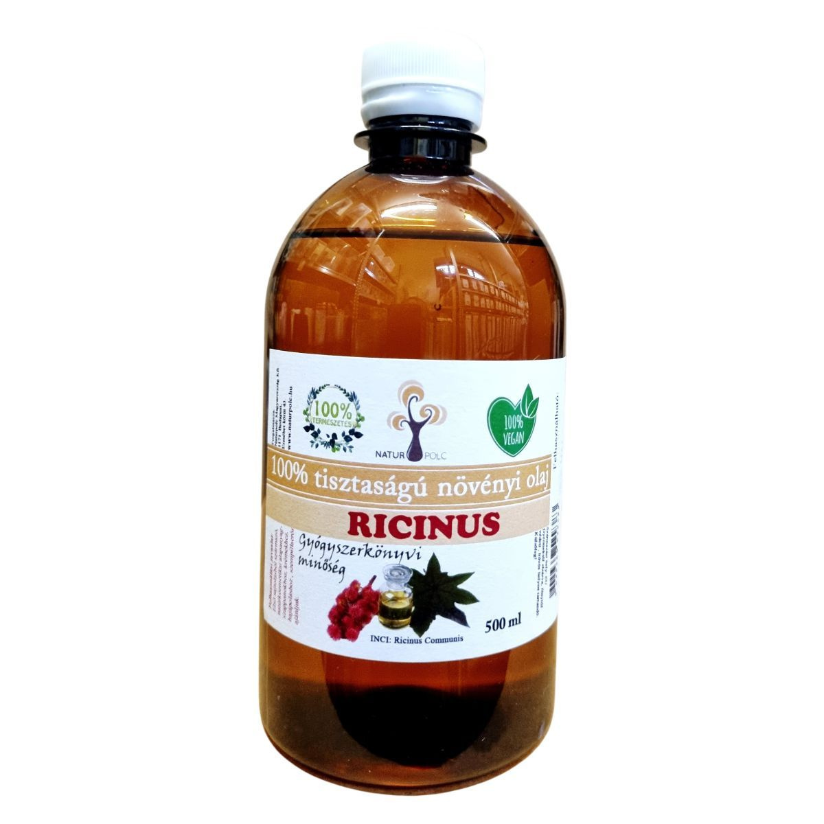 500 ml-es gyógyszerkönyvi ricinus olaj; Naturpolc termék hajápoláshoz.