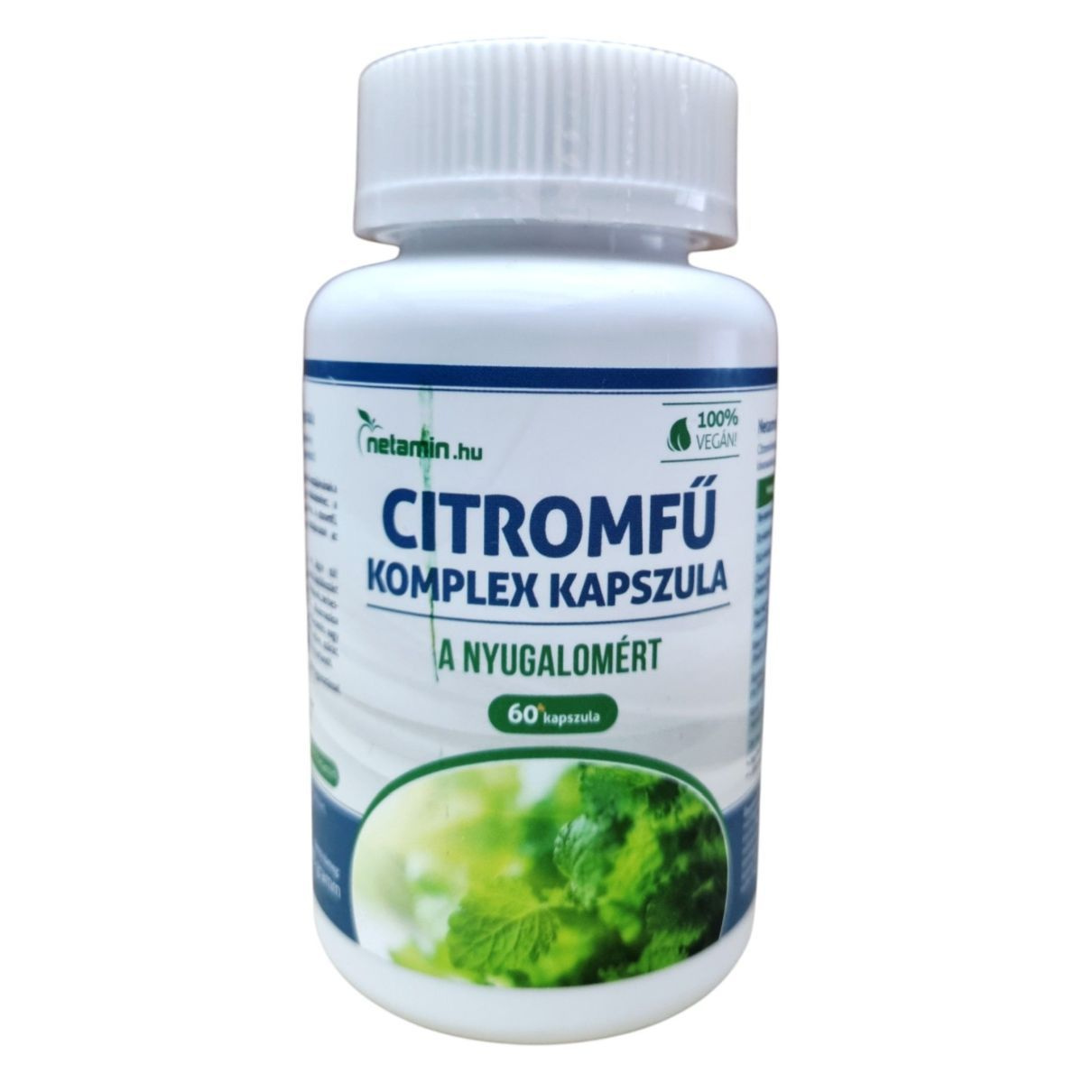 A Netamin Citromfű komplex kapszula egy 100% vegán étrend-kiegészítő, amely citromfüvet, komlót, valeriánát és más gyógynövény kivonatokat, valamint B-vitaminokat tartalmaz. A termék célja, hogy támogassa a nyugodt és kiegyensúlyozott pszichés funkciókat. A B1- és B6-vitaminok hozzájárulhatnak az idegrendszer egészséges működéséhez, míg a macskagyökér és a varjúháj a fáradtság csökkentéséhez járulhat hozzá. A termék használata előtt javasolt orvosi konzultáció, különösen terhesség, szoptatás vagy 14 éves kor alatti gyermekek esetén.