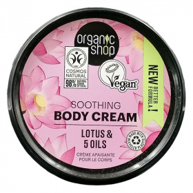 250 ml-es testápoló krém; Organic Shop termék testápoláshoz.