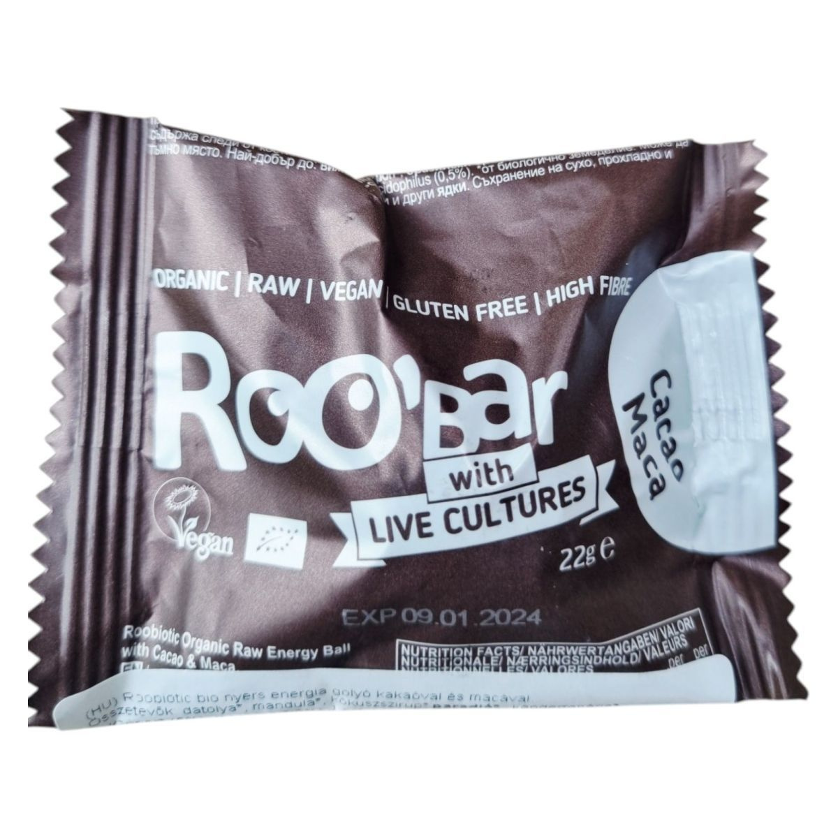 A Roobiotic Organic Raw Energy Ball egy bio, nyers energia golyó, amely kakaóval és macával készült. Ez a termék vegán, gluténmentes és szójamentes, így különösen alkalmas lehet azok számára, akik speciális étrendet követnek. Az összetevők között található datolya, mandula, kókuszszirup, paradió, kendermag és Lactobacillus acidophilus, amelyek mind ellenőrzött ökológiai gazdálkodásból származnak. A termék nyomokban földimogyorót és más dióféléket tartalmazhat. A Roobiotic energia golyó magas rosttartalmú, és természetes módon édesített, így egészséges alternatívát nyújthat a hagyományos édességek helyett. A termék forgalmazója a Gorky és Zentai Kft., és a biotermék kereskedelmét a HU-ÖKO-02 tanúsítvány igazolja.