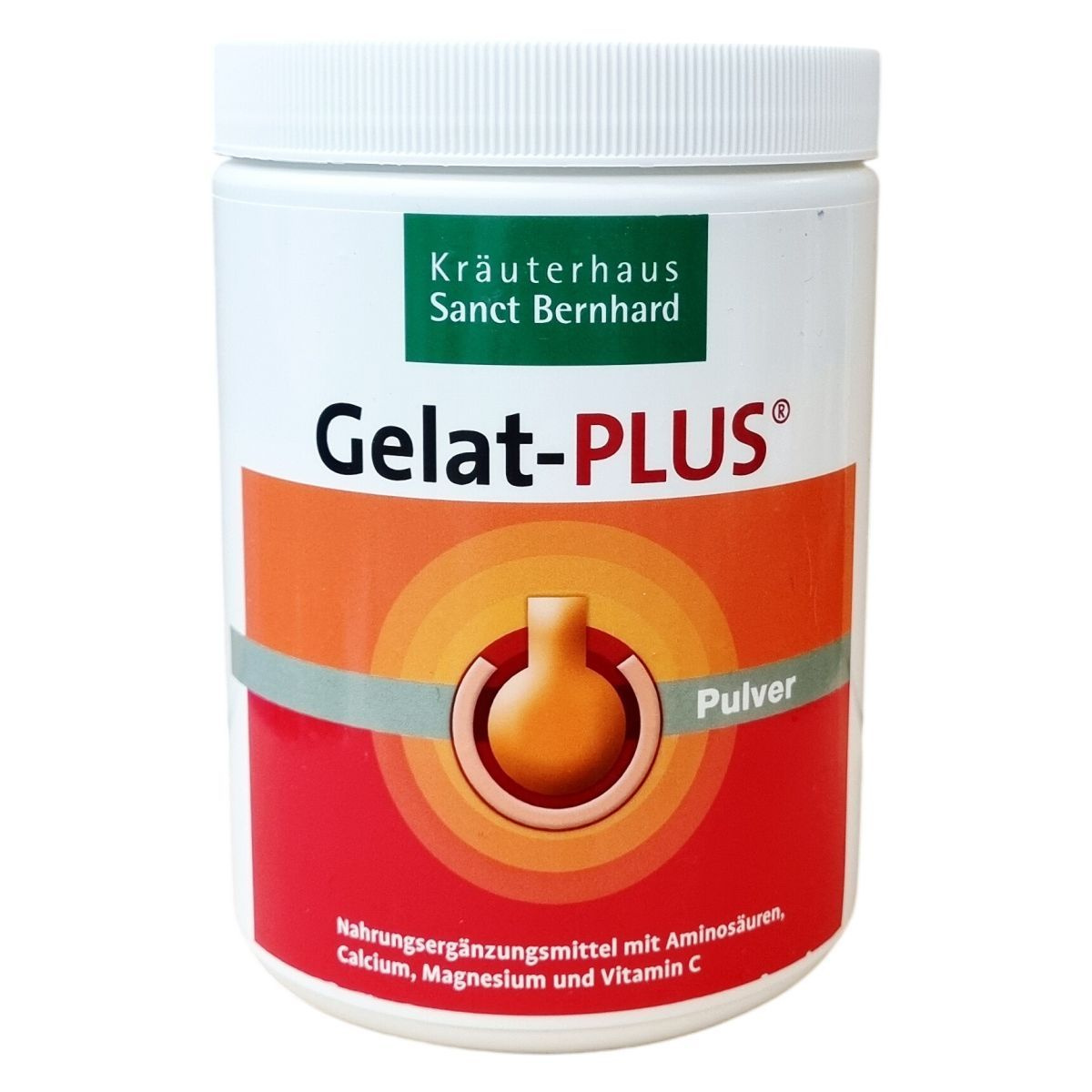 A Gelat-PLUS egy por formájú étrend-kiegészítő, melyben hidrolizált kollagén, kalcium, magnézium és acerola kivonat találhatók. A termék adagolása felnőtteknek napi háromszor egy teáskanálnyi, amit gyümölcslében vagy teában javasolt elkeverni, miközben a fogyasztás alatt kiemelten ajánlott a nagyobb folyadékbevitel. A termék nem helyettesíti a kiegyensúlyozott étrendet és az egészséges életmódot. Kizárólag felnőttek számára készült, gyermekektől elzárva kell tartani. Származási helye Németország, gyártója a Kräuterhaus Sanct Bernhard KG. A termék rendszeres fogyasztása legalább 6 hónapon át javasolt a kívánt hatás elérése érdekében.