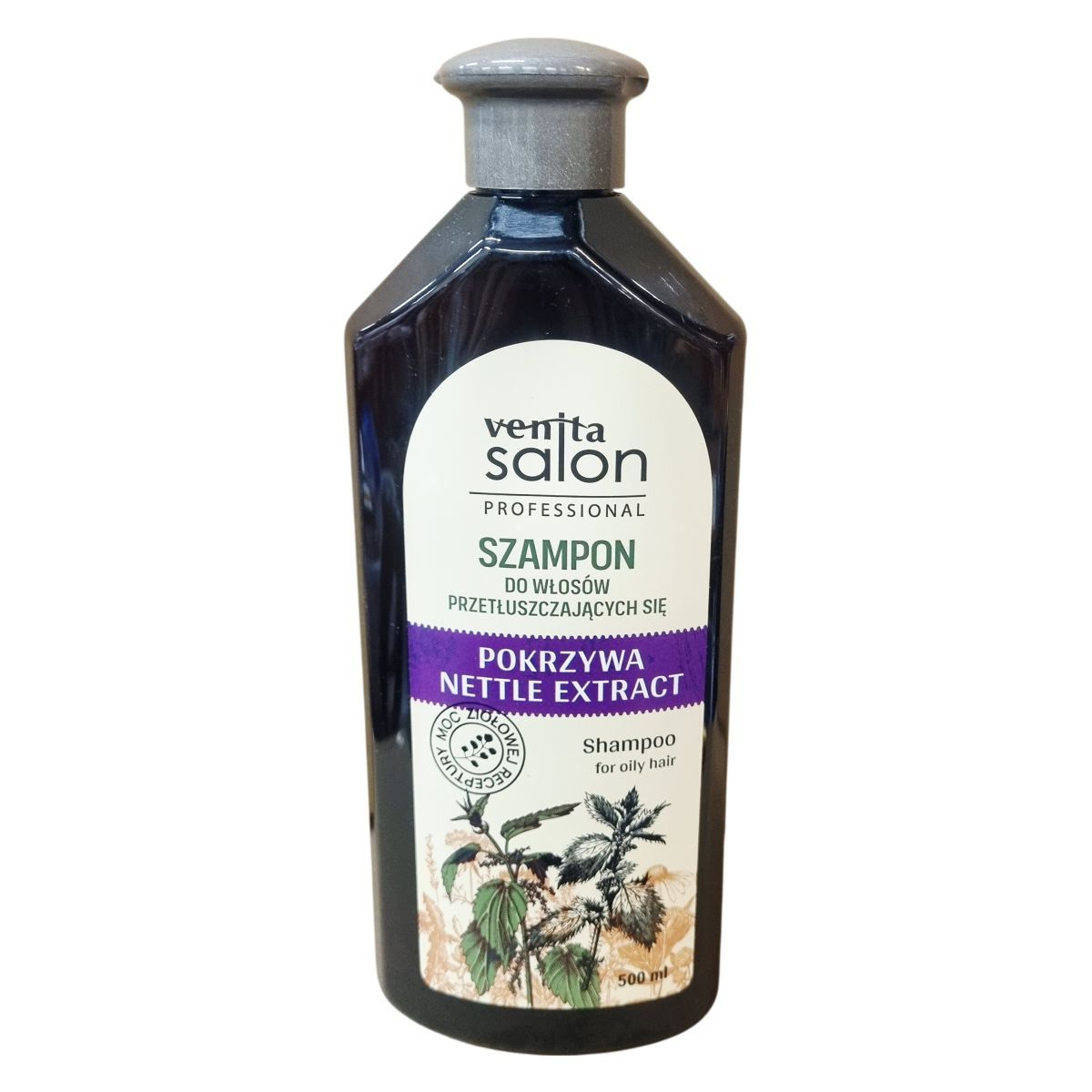 A Venita Salon Professional szampon zsíros hajra csalán kivonattal készült, amely hatékonyan, de kíméletesen tisztítja a hajat és a fejbőrt, megelőzve a haj túlzott zsírosodását. A termék 500 ml kiszerelésű, és egyszerű használatot biztosít, ahol kis mennyiségű sampont kell a hajra masszírozni, majd alaposan leöblíteni. Az összetevői között megtalálható a csalán levél kivonata, amely természetes módon támogatja a fejbőr egészségét. A sampont a Venita Fabryka Kosmetyków Sp. z o.o. gyártja Lengyelországban, és az EXIMPOIL KFT. forgalmazza. A termék címkéjén feltüntetik a gyártási tételszámot, továbbá figyelmet fordítanak arra, hogy a szavatossági idő a csomagoláson található. Az összetevőlistában több tisztító és ápoló alkotóelem is szerepel, továbbá tartalmaz illatanyagokat is. A szampon használatával hatékonyan kezelhető a zsíros haj, miközben biztosítja a friss és tiszta érzést.