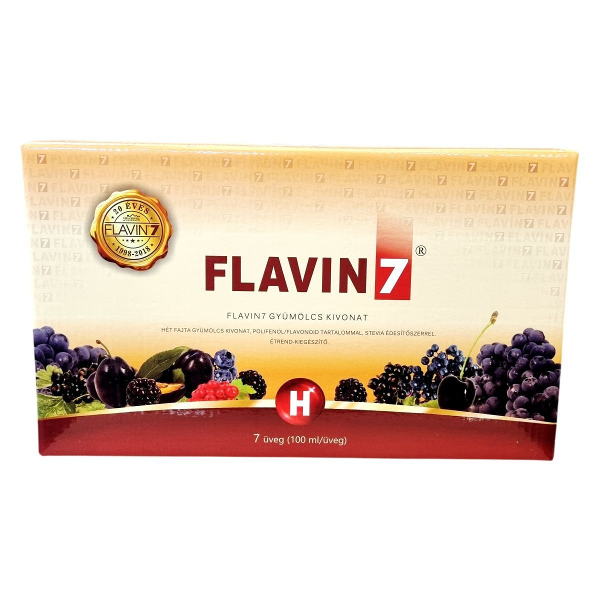 A Flavin7 gyümölcs kivonat hétféle gyümölcs kivonatából készül, melyek polifenolt és flavonoidokat tartalmaznak. Az ital stevia édesítőszerrel kerül forgalomba, így cukormentes alternatívát kínálhat. A termék nettó térfogata 700 ml, amely 7 darab 100 ml-es üvegcsomagolásban érhető el. Az íz a felhasznált gyümölcsök termőhelyének és fajtájának függvényében változhat. Az adagolást érdemes több részletben elosztva fogyasztani, az ajánlott mennyiséget nem szabad túllépni. A termék megőrzi magas polifenol- és flavonoid tartalmát, amelyek hozzájárulhatnak a szervezet védelméhez.