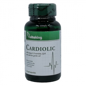 A Vitaking CARDIOLIC étrend-kiegészítő egy komplex formula, amely Omega-3 zsírsavakat, Q10 koenzimet, L-karnitint és szagmentes fokhagymaolajat tartalmaz. Az EPA és a DHA hozzájárulhat a szív megfelelő működéséhez, míg a DHA a normál agyműködés fenntartásához. A fokhagyma segíthet fenntartani a szív egészségét, valamint az immunrendszer normál működését. A termék 60 gélkapszulát tartalmaz, és napi egy kapszula fogyasztása javasolt étkezés közben.