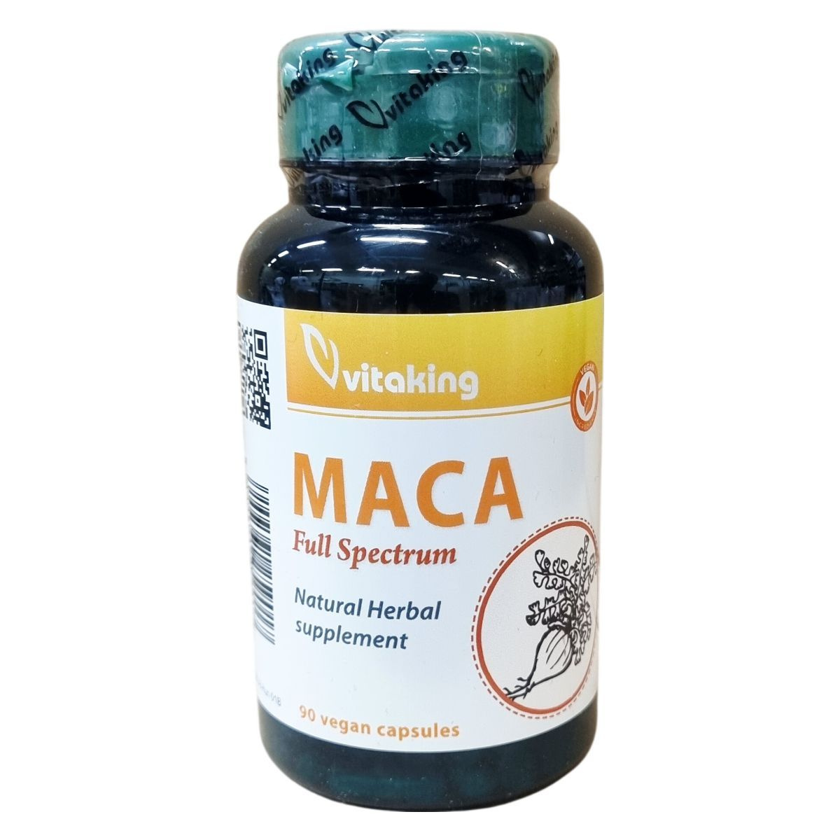 A Maca Gyökér egy zöldség, mely vadon nő az Andok lejtőin, és már évezredek óta használják. A gumó a perui lakosság számára hasonló értékű tápláló növény, mint a rizs, a búza, a kukorica vagy a bab a más kontinensen élők számára.A maca azonban nemcsak magas szénhidrát tartalmáért nagyra értékelt élelmiszer, hanem egyéb összetevőinek köszönhetően széles körben lehet hasznos kiegészítés. A növényben különösen sok foszfor, vitamin (béta-karotin, tiamin, riboflavin, niacin, B6-vitamin, C-vitamin és D-vitamin), vas, jód, szénhidrát, fehérje, esszenciális zsírsav található. Fő hatóanyagai azonban az alkaloidok, flavonoidok, glikozidok és fitoszteroidok csoportjába tartoznak. A maca növény, mint természetes erősítőszer, azon egészséges emberek számára ajánlott, akiknek új impulzusra van szükségük. Napi ajánlott mennyiség: 3 kapszula. A felhasználási javaslatban megadott mennyiséget ne lépje túl! A termék nem helyettesíti a vegyes étrendet és az egészséges életmódot. A doboz gyermekek elől gondosan elzárva, száraz, hűvös helyen, sugárzó hőtől és fénytől védve tartandó!