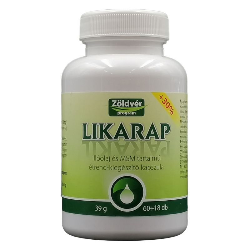 A Zöldvér Program Likarap egy illóolaj és MSM tartalmú étrend-kiegészítő kapszula, mely teafaolajat, grapefruitmagolajat, oregano olajat, valamint kurkuma és szegfűszeg port tartalmaz. Az oregano olaj hozzájárulhat a belek egészségének fenntartásához. A grapefruitmag enzimblokkoló hatással bírhat, ezért gyógyszerszedés esetén orvosi egyeztetés szükséges.