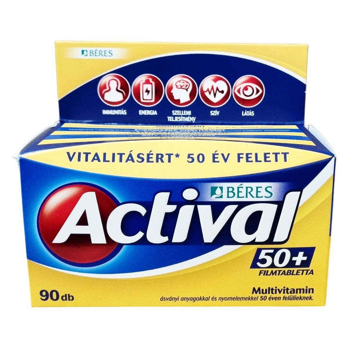 Az Actival 50+ egy komplex étrend-kiegészítő multivitamin, ásványi anyagokkal és nyomelemekkel, amely kifejezetten a 50 év felettiek igényeire lett kialakítva. Hozzájárulhat a teljesítőképesség fenntartásához, az immunrendszer normális működéséhez, és támogathatja a normál látást, a szív és a szellemi működés megfelelő működését. A termék ajánlott használata kifejezetten hasznos lehet csökkent felszívódás, kiegyensúlyozatlan táplálkozás vagy betegségek utáni lábadozás esetén. A készítmény hatóanyagai több vitamin és ásványi anyag, valamint a Panax ginseng gyökér kivonat, melyek különféle élettani folyamatokban játszhatnak szerepet, például az energia-termelésben, az immunválaszban, valamint az idegrendszer és a kardiovaszkuláris rendszer támogatásában.