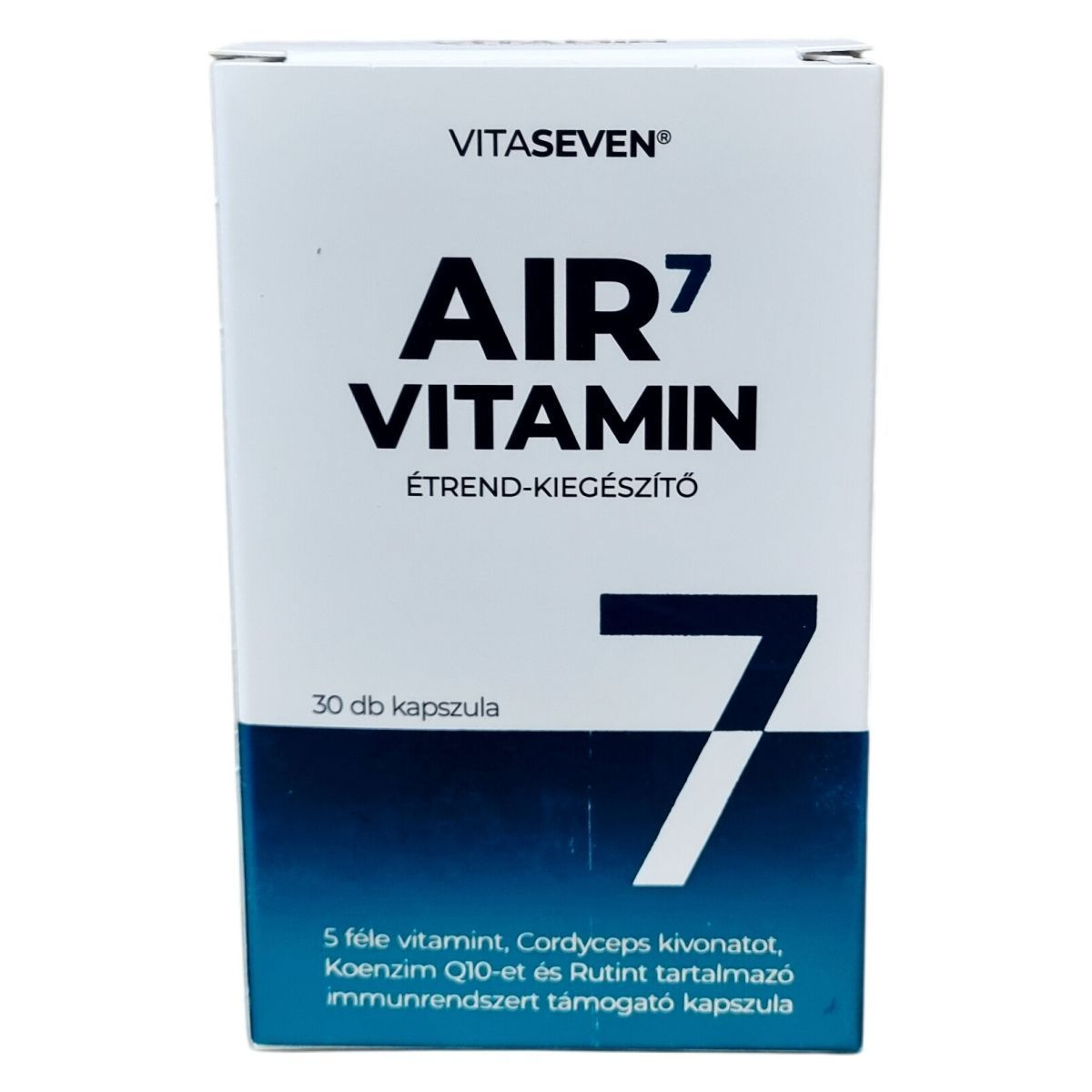 Az AIR7 kapszula olyan hatóanyagokat tartalmaz, amelyek hozzájárulhatnak az immunrendszer normál működéséhez, továbbá a fáradtság és a kifáradás csökkentéséhez. Az A-, B6-, C- és D-vitaminok, valamint az E-vitamin antioxidáns védelemmel szolgálhatnak a sejtek számára. A Cordyceps sinensis kivonat poliszacharidokat tartalmaz, a koenzim Q10 és a rutin pedig kiegészítheti az immunrendszer támogatását. A termék 30 darab kapszulás kiszerelésű, amely nagyjából egy hónapra elegendő adag.