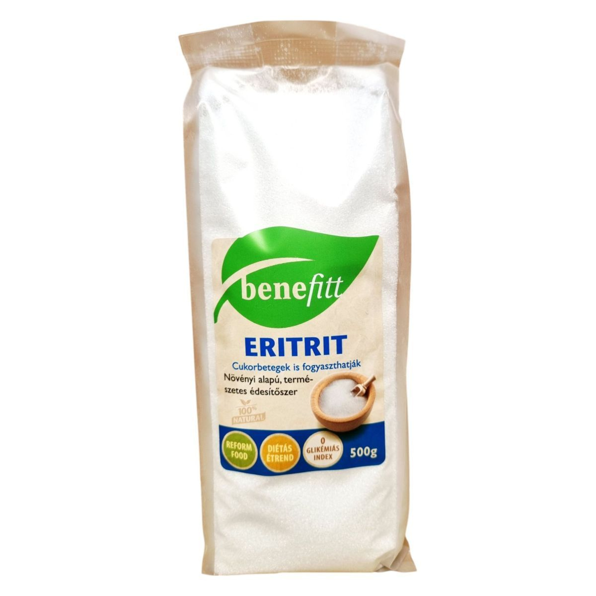 Az ERITRIT egy növényi eredetű, természetes édesítőszer, amelyet cukorbetegek is fogyaszthatnak. Energiatartalma 0, így nem hizlal, és glikémiás indexe is 0, ami azt jelenti, hogy nem növeli a vércukorszintet és az inzulinválaszt. Az eritritol 100%-ban természetes összetevő, amely biztonságosan használható, mivel nem okoz bélpanaszokat. A termék ideális választás lehet diétás étrendhez, és reform élelmiszerként is megállja a helyét. Az eritritol kristálycukor helyettesítésére szolgál, de karamellizálásra nem alkalmas. A termék Kínából származik, és a BGB Interherb Kft. forgalmazza Magyarországon.