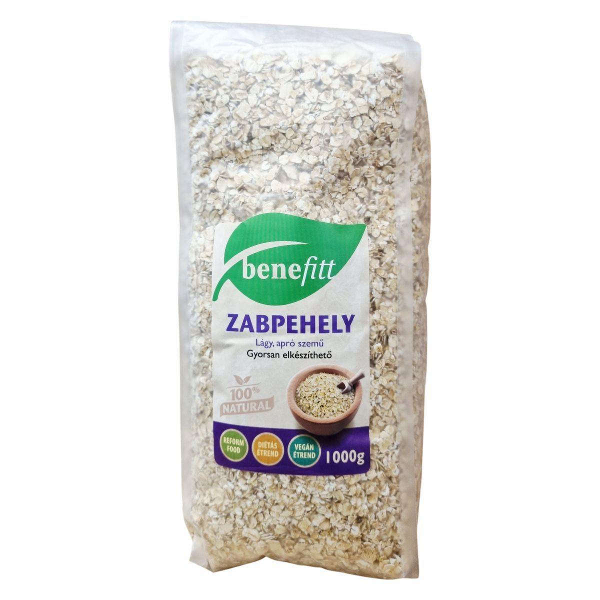 A zabpehely apró szemű, lágy textúrájú termék, mely kiválóan alkalmas gyors és egészséges reggeli készítésére. Lassan felszívódó szénhidrátokat és könnyen emészthető fehérjéket tartalmaz. Az eredet helye EU-1 és Ukrajna-2, mely a gyártási szám első számjegyéből azonosítható. A csomagoláson jelzett időpontig megőrzi minőségét.