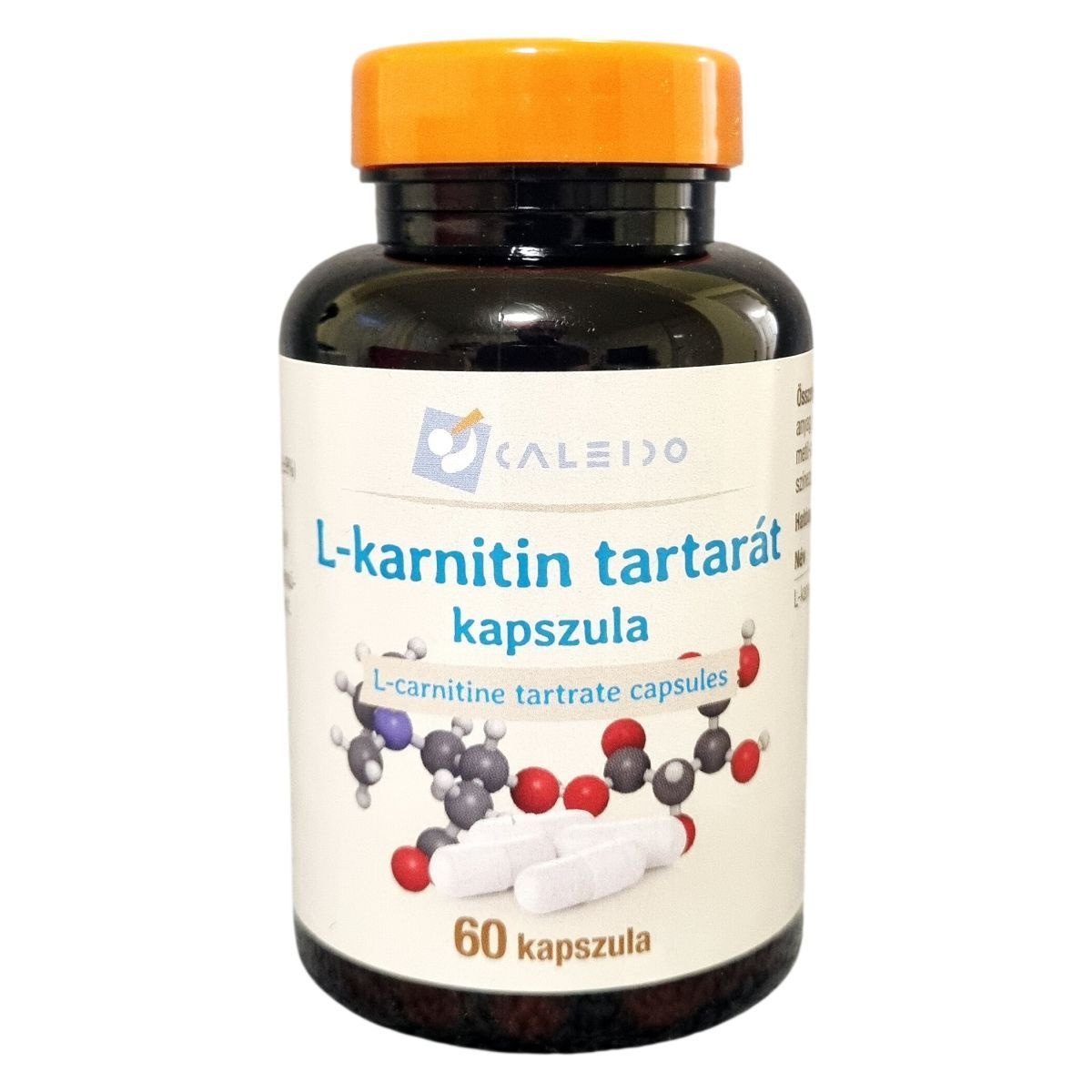 A Caleido L-karnitin tartarát kapszula származási helye Spanyolország. A termék nettó tömege 34,4 g, kapszulánkénti tömege körülbelül 574 mg a megengedett eltérés ±9%. A kapszula összetevői között megtalálható az L-karnitin-tartarát, a csomósodást gátló szilícium-dioxid, valamint a kapszulahéj anyagai, mint a hidroxipropil-metil-cellulóz, karragén, kálíum-acetát, természetes színezék (kalcium-karbonát) és módosított keményítő. A termék OGYÉI notifikációs számmal rendelkezik, ami a törvényes forgalmazást igazolja. A készítmény alkalmazása mellett ajánlott a kiegyensúlyozott étrend és az egészséges életmód fenntartása.