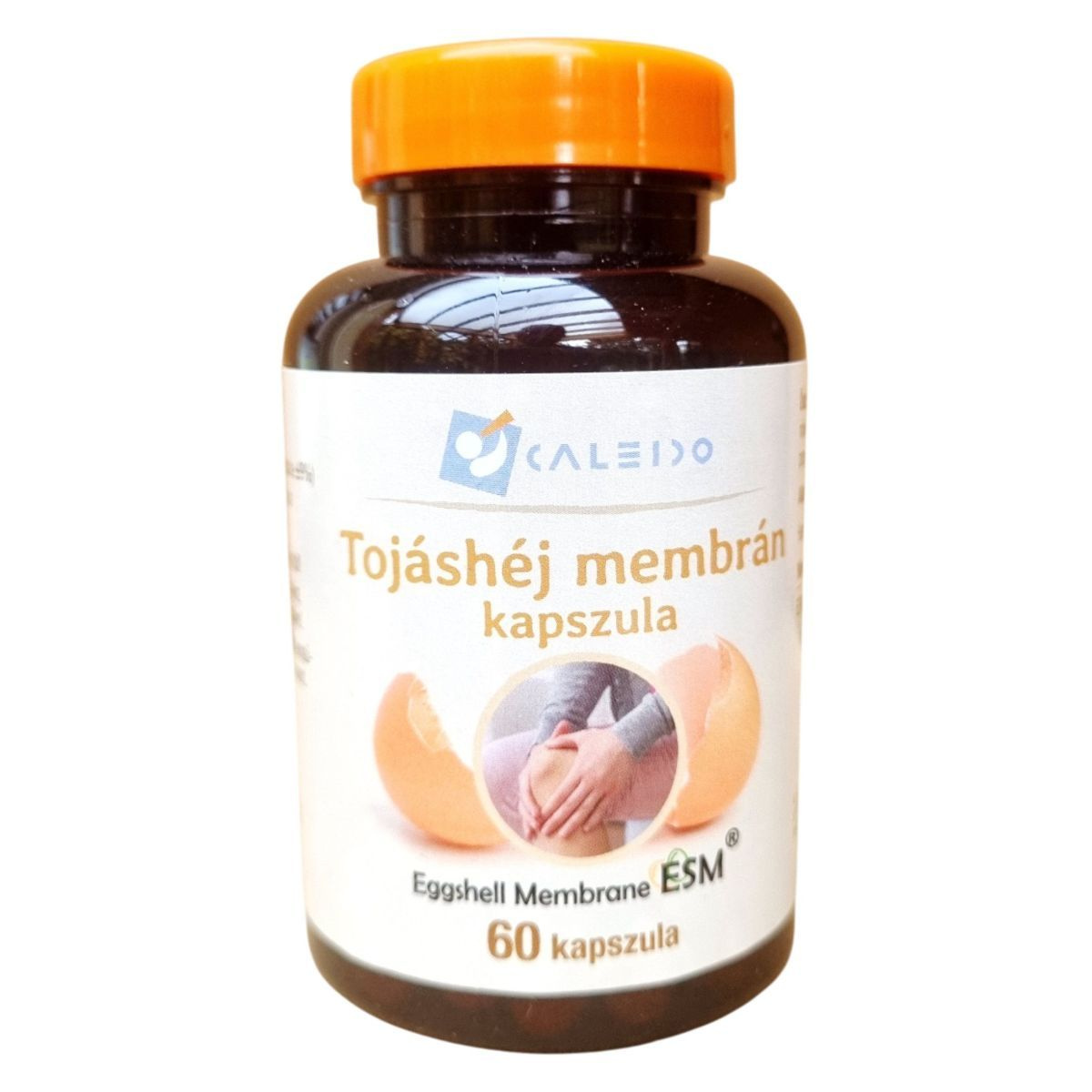 A Caleido Tojáshéj membrán kapszula Spanyolországból származik, és a TOROLIS bejegyzett védjegyével ellátott ESM tojáshéj membrán port tartalmaz. A termék 60 kapszulát tartalmaz, amelyek egyenként 389 mg súlyúak. A termék célja lehet az ízületek egészségének támogatása, és a napi adag 600 mg ESM tojáshéj membránt biztosíthat. A kapszulák hidroxi-propil-metil-cellulóz kapszulahéjjal készülnek, és kalcium-foszfátot tartalmaznak térfogatnövelő szerként. A termék allergén információi szerint tojást és tojásszármazékokat tartalmaz, ezért tojásallergiásoknak konzultálniuk kell orvosukkal a fogyasztás előtt. A termék tárolása száraz, hűvös, fényvédett helyen javasolt, gyermekektől elzárva.