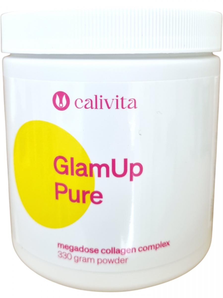 A Calivita GlamUp Pure egy 330 g-os kollagén komplex por, amely megadott napi adagban hidrolizált marhakollagént és többféle antioxidáns, vitamin és növényi kivonat kombinációját tartalmazza. A formula olyan összetevőket foglal magába, mint a hialuronsav, gránátalma-kivonat, koenzim Q10, édesburgonya-kivonat és karotinoid komplex. A címkén hangsúlyozott a termék magas minősége és a gyártási folyamat szigorú ellenőrzése. Az összetevők együttesen hozzájárulhatnak a bőr rugalmasságának, a kötőszövetek és ízületek normál állapotának támogatásához. A praktikus por forma lehetővé teszi, hogy könnyen adagolható és beilleszthető legyen a mindennapi étrendbe.