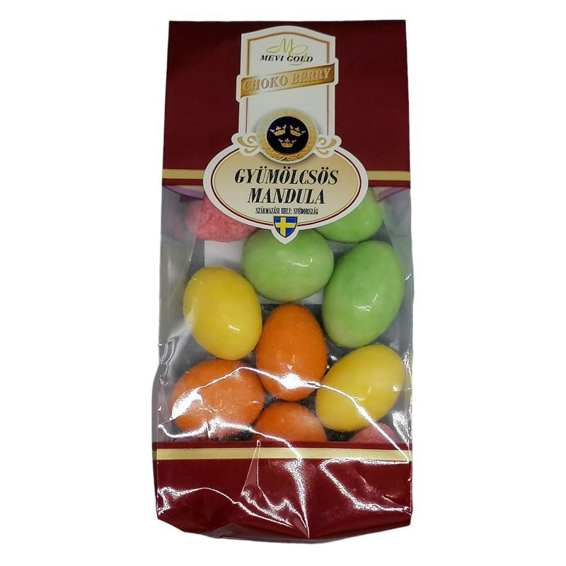 Cukor, MANDULA (20%), kakaóvaj, TELJES TEJPOR, SAVÓPOR, LAKTÓZ, kakaómassza, koncentrált passió gyümölcslé, körtepüré, eperpor, narancspor, sárgabarack, savanyúságot szabályzó (almasav, nátrium malát), emulgeáló szer (SZÓJALECITIN), aroma (természetes vanília, passió, körte, eper, narancs), növényi szí koncentrátum (sáfrány, spirulina), cékla lé, színezék(paprikakivonat,E160c), felület kezelő E904, glükózszirup, módosított tápióka keményítő, növényi olajok (kókusz, repce) változó arányban. A fehércsokoládé min. 25% kakaót tartalmaz.