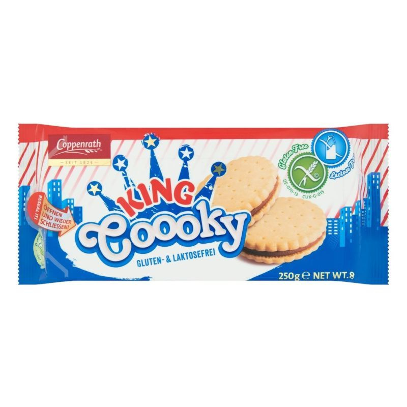 Gluténmentes, kakaókrémmel (30%) töltött keksz.