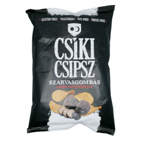 Gluténmentes tartósítószer és színezékmentes. Összetevők: burgonya, napraforgóolaj 35%, szarvasgombát tartalmazó fűszerkeverék.
