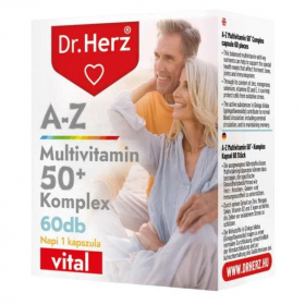 A Dr. Herz A-Z 50+ Multivitamin Komplex kapszula egy étrend-kiegészítő, amelyben vitaminok, ásványi anyagok, nyomelemek és ginkgo biloba található.