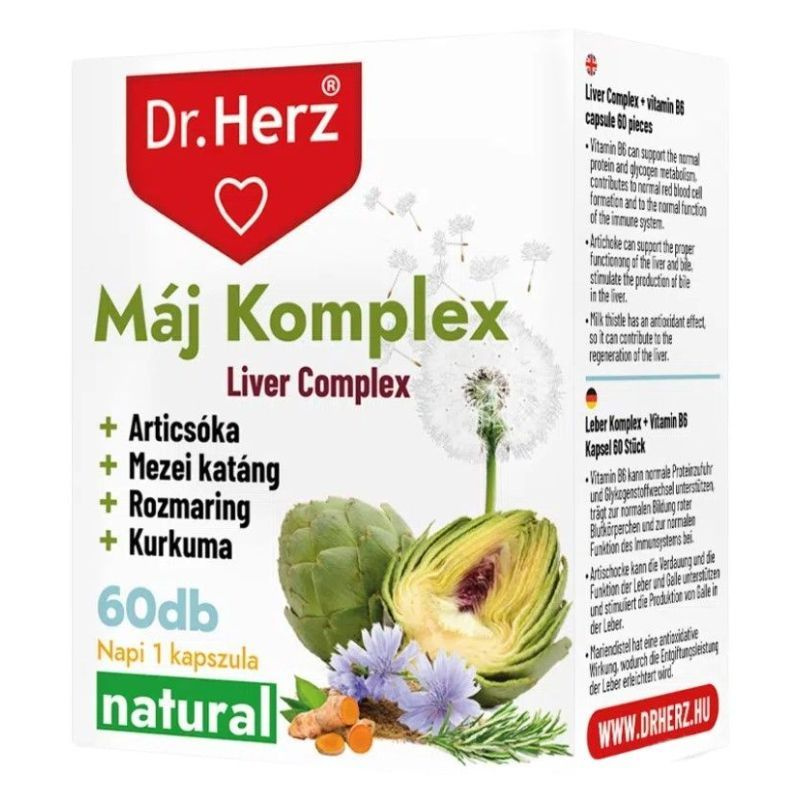 A Dr. Herz Máj Komplex kapszula étrend-kiegészítő, ami hatékonyan támogatja a máj méregtelenítését, segít megőrizni a májsejtek egészségét, és javítja az epe működését.