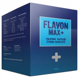 A Flavon Max+ egy polifenolokat tartalmazó étrend-kiegészítő készítmény, amely különböző gyümölcsök lékoncentrátumait tartalmazza, mint például gránátalma, fekete bodzabogyó és kékszőlő. A termék C- és E-vitamin tartalma hozzájárulhat az immunrendszer és az idegrendszer normál működéséhez, valamint a sejtek oxidatív stresszel szembeni védelméhez. A Panax ginseng adaptogén hatása miatt a termék fogyasztásában 6 hét után szünetet kell tartani, és magas vérnyomás esetén nem javasolt. A termék tartósítószert nem tartalmaz, és OÉTI által értékelt és szakvéleménnyel ellátott.