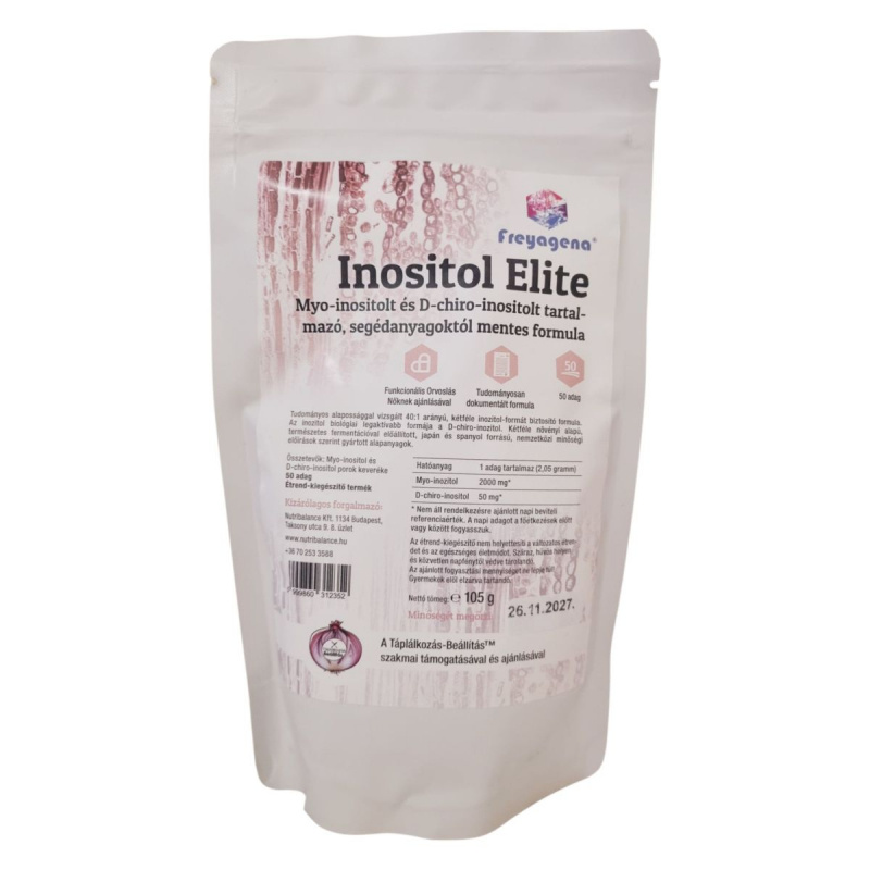 A freyagena Inositol Elite egy funkcionális orvoslás által nőknek ajánlott étrend-kiegészítő, amely myo-inositolt és D-chiro-inositolt tartalmaz. A termék segédanyagoktól mentes, és nemzetközi minőségi előírások szerint gyártott alapanyagokból készülhet. A Táplálkozás-Beállítás™ szakmai támogatásával és ajánlásával készült, és kizárólagos forgalmazója a Nutribalance Kft. A termék 50 adagot tartalmaz, és a hatóanyagok biológiailag leghatékonyabb formáit biztosíthatja.