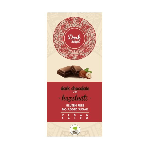 80 g-os paleo dark delight étcsokoládé egész mogyoróval édesítőszerekkel; Health Market termék az egészséges élelmiszerek kedvelőinek.