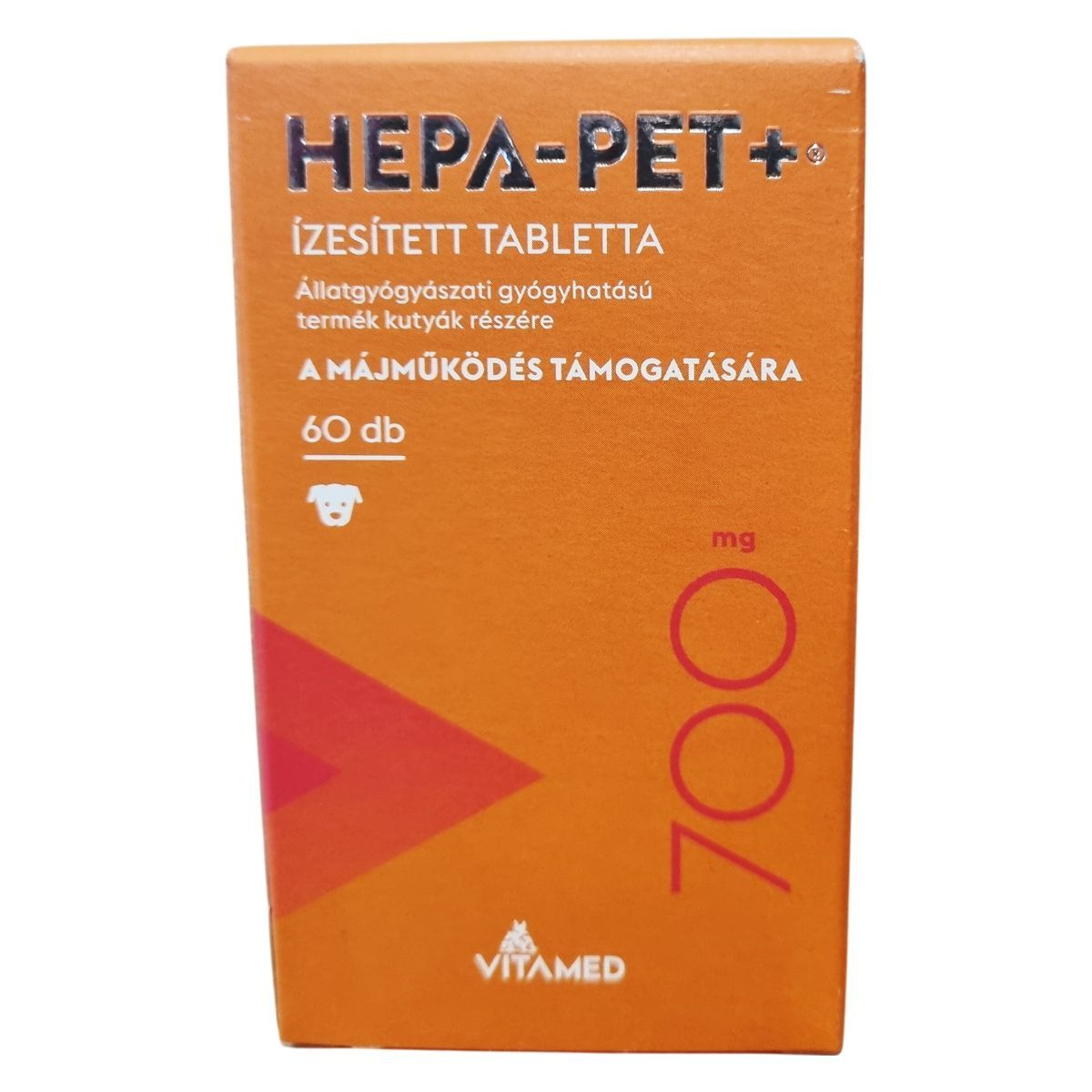 A HEPA-PET+® ízesített tabletta állatgyógyászati gyógyhatású termék kutyák számára, mely a májműködés támogatására készült. Egy tabletta 700 mg-os, és tartalmaz olyan hatóanyagokat, mint a S-Adenozil-L-metionin (SAMe), máriatövis termés kivonat, továbbá B-vitaminokat és E-vitamint. A terméket főként a műtéti beavatkozás előtti napoktól a varratszedésig, illetve hosszú távon is javasolhatják. A tabletták ízesítettek, ezért az állatok általában szívesen elfogyasztják, de szükség esetén kis falatban is beadható. A termék kizárólag állategészségügyi vagy állatápolási célra szolgál, gyermekektől elzárva kell tartani. A dobozon fel van tüntetve a gyártási szám és egyéb fontos információk. A termék gyártója az Arnica Kft., a forgalmazója a Vitamed Pharma Kft.