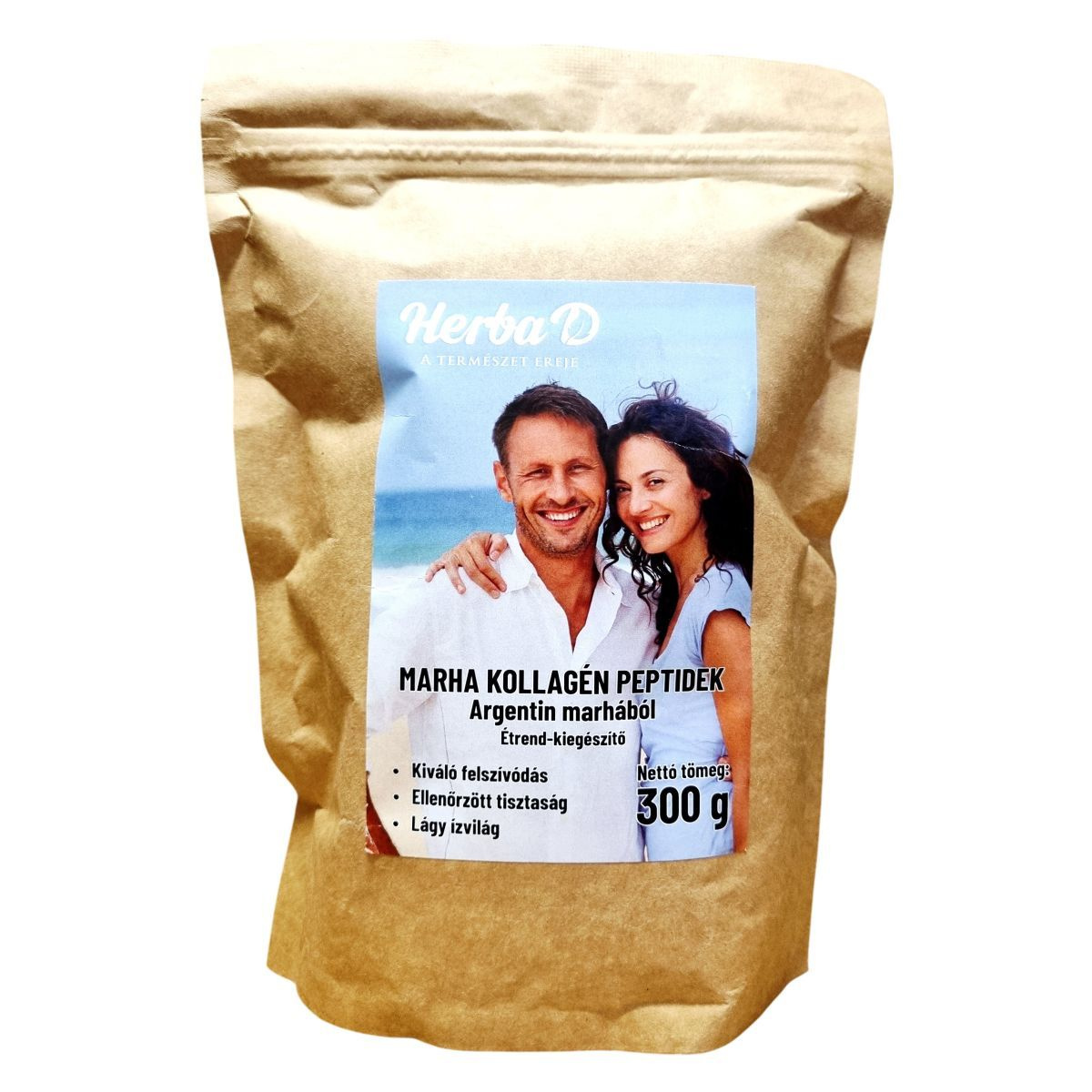 A HerbaD Marha Kollagén Peptidek étrend-kiegészítő argentin marhából származó kollagén peptideket tartalmaz, amelyek kiváló felszívódásúak és ellenőrzött tisztaságúak lehetnek. A termék semleges ízvilágú, így bármilyen folyadékban könnyen oldódhat, legyen az meleg vagy hideg. A napi ajánlott mennyiség 10 gramm, amelyet reggel vagy este lefekvés előtt is fogyaszthatunk. A termék nem helyettesíti a kiegyensúlyozott étrendet és az egészséges életmódot. Tárolása szobahőmérsékleten, napfénytől védve ajánlott.