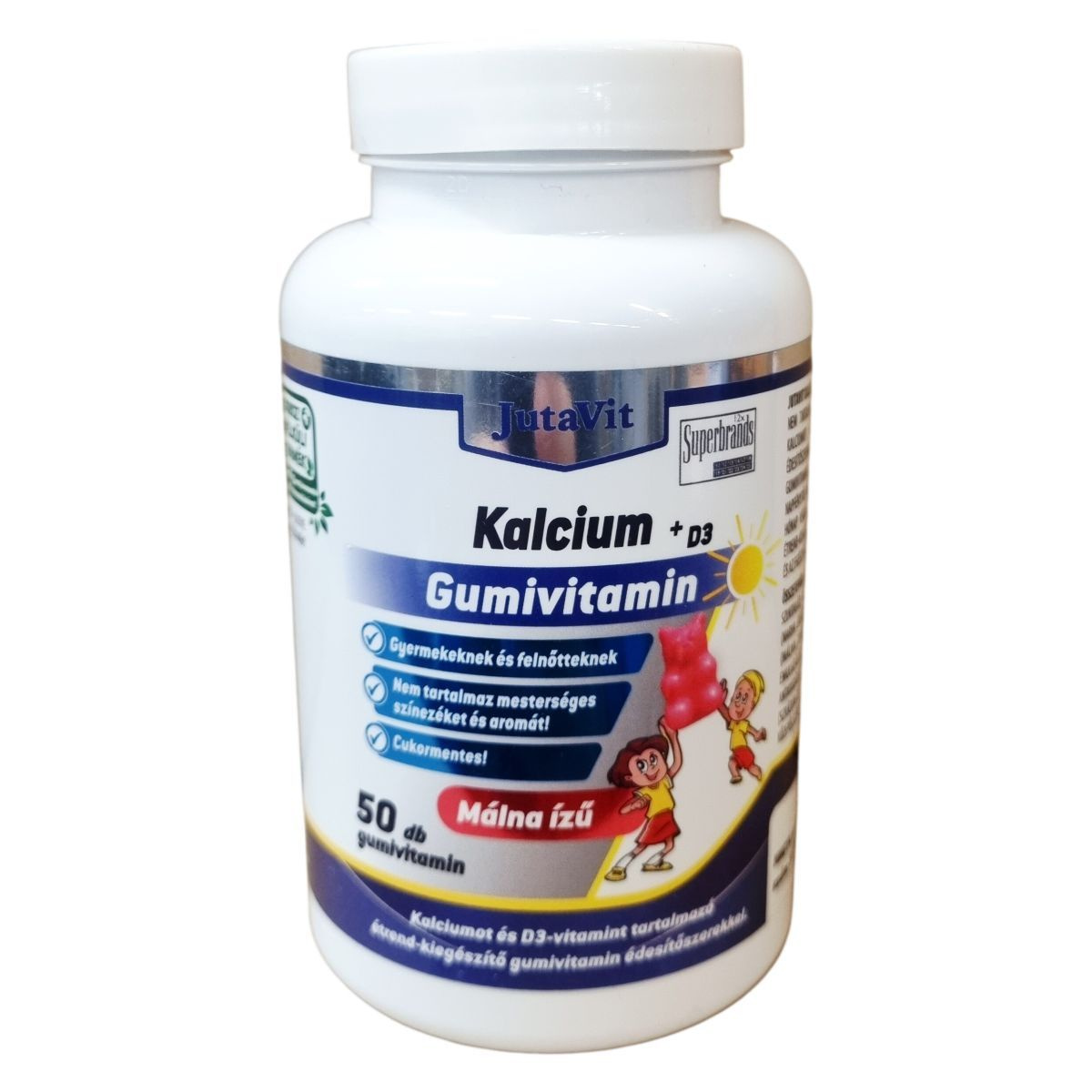 A JutaVit Kalcium + D3 gumivitamin édesítőszerrel készült, málna ízű, cukormentes termék, amely mesterséges színezéket és aromát nem tartalmaz. A fő hatóanyagok a kalcium és a D3-vitamin, amelyeket kalcium-citrát formájában és kolekalciferol néven találhatunk meg a készítményben. A termék zselatint is tartalmaz, mely marha eredetű. A gumivitamin stabilitását és minőségét számos adalékanyag biztosítja, mint például savanyúságot szabályozó anyagok, antioxidánsok és fényezőanyag. A termék a hivatalos notifikációs számmal rendelkezik, és gyermekeknek 3 éves kortól, illetve felnőtteknek ajánlott mennyiségben fogyasztható elszopogatva vagy elrágva. A készítményt célszerű szobahőmérsékleten, napfénytől védve tárolni, és gyermekek elől elzárva tartani. Fontos megjegyezni, hogy az étrend-kiegészítő nem helyettesíti a kiegyensúlyozott étrendet és az egészséges életmódot.