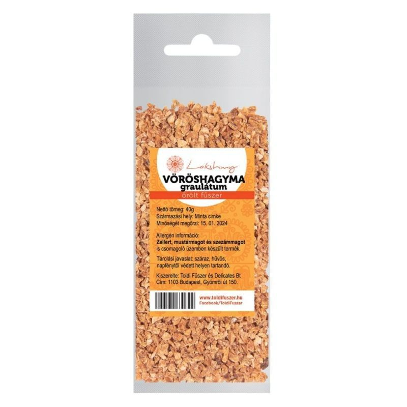 40 g-os vöröshagyma granulátum; Lakhsmy termék az egészséges élelmiszerek kedvelőinek.