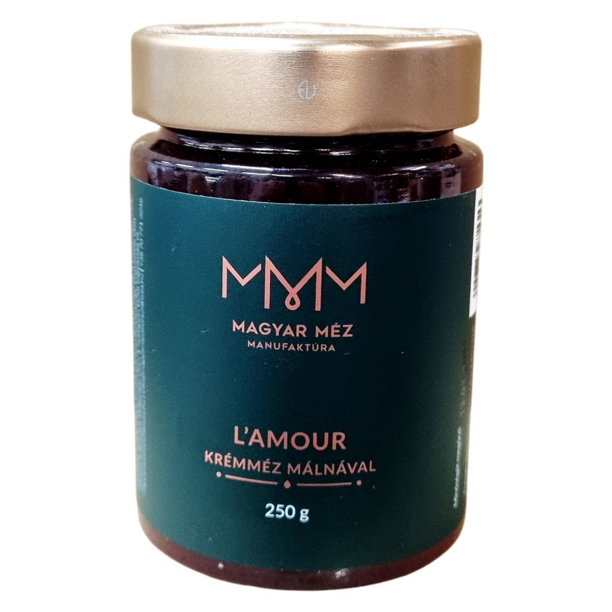 A l’amour megalkotásával nem más volt a célunk, mint hogy elvarázsoljuk, levegyük a lábáról szívünk választottját, párunkat szerettünket. Végülis ezzel célba is értünk. Megalkottunk egy olyan krémmézet, melyben tökéletes egyveleget alkot a málna savanykás ízvilága a méz édes ízével. Emellett krémes mint a legjobb mogyorókrémek. 5%-os gyümölcstartalommal bír és 95% repcemézzel készült. A liofilizált málnának köszönhetően nincs tápérték vesztés, nincs hozzáadott cukor, színezék, aroma, se tartósítószer! Felhasználási javaslat: magában, kenyérre, kalácsra, reggeli zabba, teába, limonádéhoz, fagylalthoz, palacsintára (ba) sült szarvas v. szarvasraguhoz. A termék tetején képződő mézhab a krémesítés folyamán jön létre a termék minőségét nem befolyásolja! fogyasztás előtt ajánlott felkeverni! tároljuk száraz hűvös (15-22 °C) helyen. Felbontás után egy hónapon belül fogyaszd el!