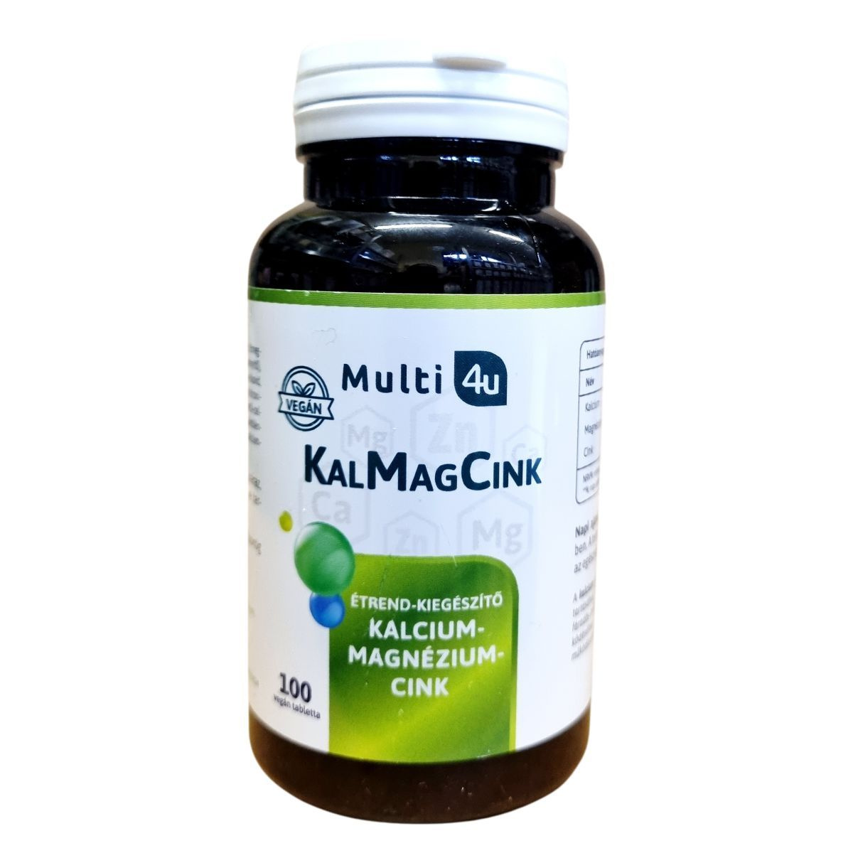 A Multi 4u KalMagCink étrend-kiegészítő három fontos ásványi anyagot tartalmaz: kalciumot, magnéziumot és cinket. A kalcium szükséges lehet a normál csontozat és fogazat fenntartásához. A magnézium hozzájárulhat a fáradtság és kimerültség csökkentéséhez, valamint az idegrendszer megfelelő működéséhez. A cink támogathatja az immunrendszer normál működését. A termék vegán étrendbe illeszthető, és napi három tabletta fogyasztása ajánlott étkezés közben. Fontos, hogy a terméket gyermekek elől elzárva, száraz, hűvös helyen tároljuk. A termék nem helyettesíti a vegyes étrendet és az egészséges életmódot.