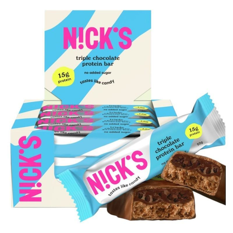 Nick's csokoládés fehérjeszelet 40 g - gluténmentes, hozzáadott cukor nélkül készült, prebiotikus összetevővel, 10-féle vitaminnal. Cukor helyett stevia, eritrit és xilit keveréke került felhasználására, mesterséges édesítőszert nem tartalmaz. 30%-os fehérjetartalmú, csokoládés krémmel töltött ropogós ostya lágy tejcsokoládé borítással, megújult recept alapján! A hozzáadott cikóriagyökér rostnak köszönhetően prebiotikus hatású. Fogyasztását ajánljunk sportolók, nehéz fizikai munkát végzők, cukorbetegek, gluténérzékenyek és tudatosan táplálkozók számára!