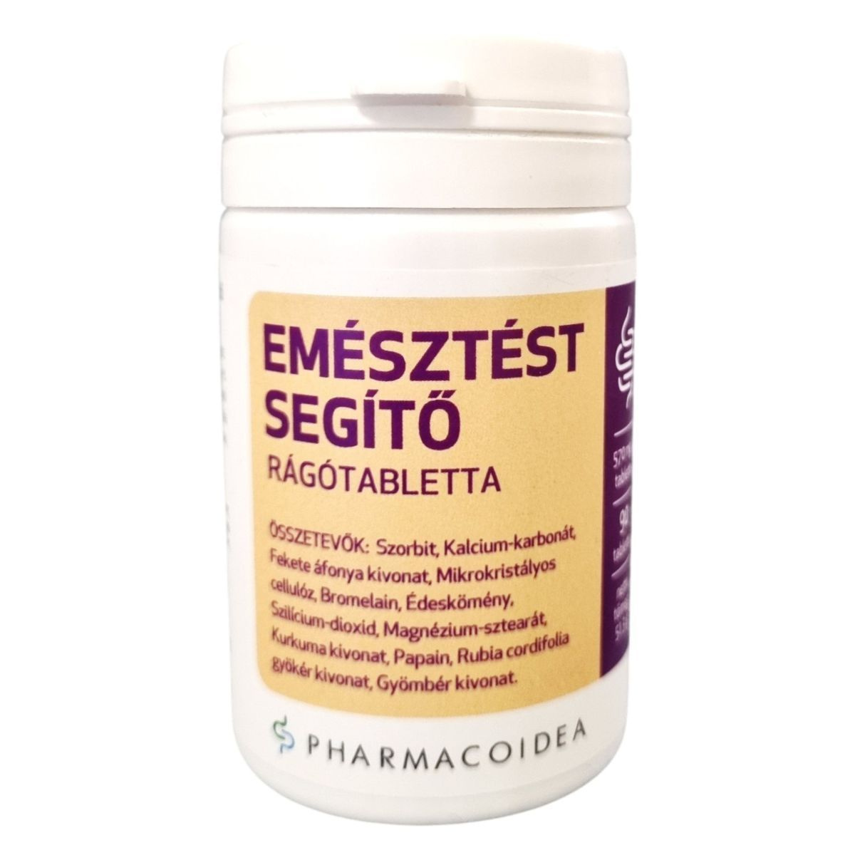Az Emésztést Segítő rágótabletta egy étrend-kiegészítő, amely gyógynövény kivonatokkal és ásványi anyagokkal készülhet. A termék összetevői, mint a fekete áfonya kivonat, a Rubia cordifolia és a gyömbér kivonat, hozzájárulhatnak az emésztőrendszer normál működéséhez. A kalcium támogathatja az emésztőenzimek normál funkcióját, míg a fekete áfonya kivonat segíthet fenntartani a gyomor és a vékonybél nyákahártyájának normál működését. A termék napi ajánlott fogyasztási mennyisége 3 tabletta, és fontos, hogy az ajánlott napi beviteli értéket ne lépje túl. A terméket száraz, hűvös helyen kell tárolni, és gyermekek elől gondosan elzárva tartani.