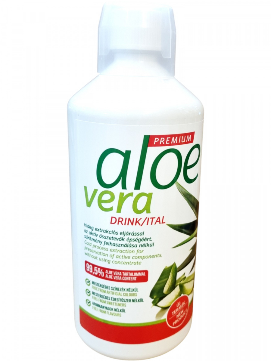 Az Aloe Vera Premium ital több mint 150 természetes hatóanyagot tartalmaz, köztük vitaminokat, ásványi anyagokat és nyomelemeket. A hideg extrakciós eljárás biztosítja, hogy az aktív összetevők épek maradjanak, így a termék hozzájárulhat a szervezet mindennapi vitalitásához és a bélrendszer megfelelő működéséhez. Magas aloe vera gél-tartalma miatt frissítő és természetes étrend-kiegészítő, amely támogatja a hidratáltságot, és kíméletesen segítheti az emésztést.