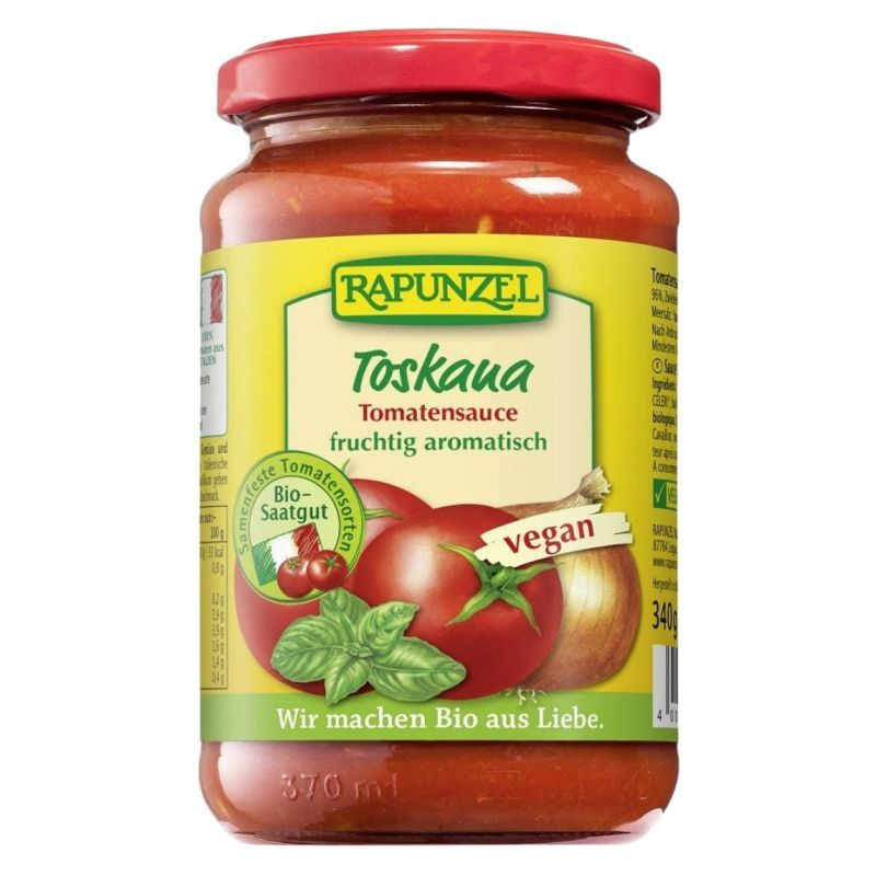 Rapunzel paradicsomszósz toscana bio ezt az alapszószt a finom zöldséges aroma és a bazsalikom íze jellemzi. Felnyitás után hűtőszekrényben tartandó és rövid időn belül felhasználandó. Felhasználás: olasz tésztával gyors és ízletes étel készíthető belőle.