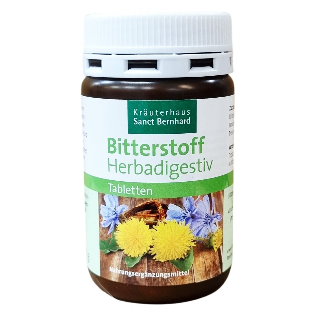 A Kräuterhaus Sanct Bernhard Bitterstoff Herbadigestiv tabletták 150 darabos kiszerelésben, Németországban készülnek. A készítményben található keserűanyagok – mint a tárnicsgyökér gentiopikrin tartalma – hagyományosan az emésztés elősegítésére szolgálnak. A termékben a keserűanyagok hatékony, természetes forrásai mellett jelen van a gyermekláncfű, a cikória és a benedekfű is. Az étrend-kiegészítőként alkalmazható tabletták elősegíthetik az egészséges emésztést, amelyet a napi kétszeri, étkezés előtt vagy közben történő bevétel biztosíthat. A termék nem helyettesíti a változatos táplálkozást és az egészséges életmódot.