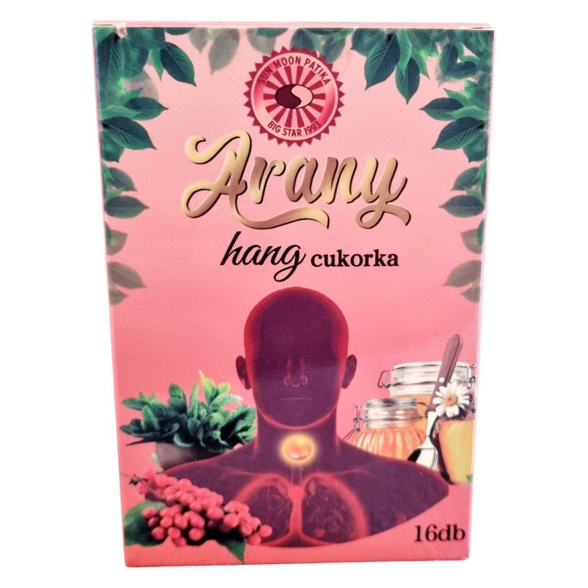 Az Arany hang cukorka a SUN MOON PATIKA terméke, amely 16 db cukorkát tartalmaz, összesen 40g nettó tömeggel. A termék Kínából származik, és a Big Star Street Kft. forgalmazza Budapesten. A cukorka schizandra bogyó kivonatot, borsmenta olajat, mentolt, mézet és nádcukrot tartalmaz. A termék fogyasztása nem ajánlott csecsemők, kisgyermekek, szoptató és terhes kismamák számára. Tárolása szobahőmérsékleten javasolt. További információkért látogasson el a www.bigstar.hu weboldalra, vagy hívja a 06 1 309 0481-es telefonszámot.