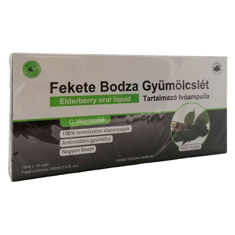 Összetevők: Méz 1000 mg/10 ml, Fekete bodza gyümölcslé 500 mg/10 ml, Goji bogyó kivonat 400mg/10 ml, Shizandra gyümölcs kivonat 200mg/10 ml, C-Vitamin 10mg/10 ml, tisztított víz.